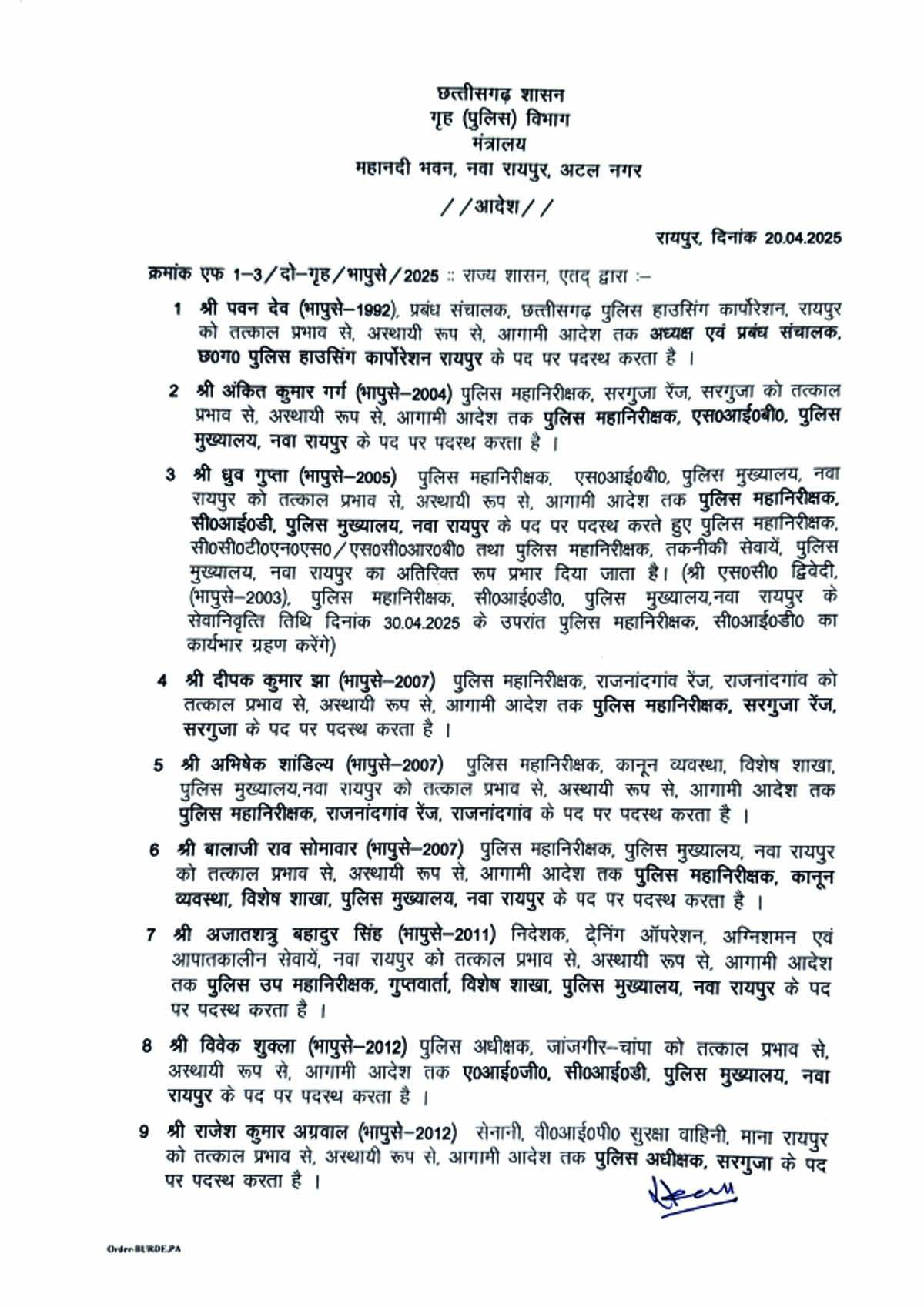 IPS Transfer : छत्तीसगढ़ सरकार ने  20 आईपीएस अफसरों का किया ट्रांसफर , इन जिलों के एसपी भी बदल गए , देखिए लिस्ट