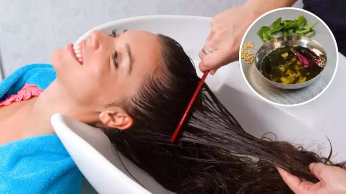– सबसे पहले नीम के पत्ते, करी पत्ता, सफेद तिल और चावल को मिक्सी में दरदरा पीस लें। – अब एक कंटेनर लें जिसमें आपने तेल रखना है। – अब पहले उस कंटेनर में मिक्सी में पीसे दरदरे पाउडर को डालें और फिर उसमें 1 कप तिल का तेल मिक्स कर दें। – अब तेल के डिब्बे में कंघी डुबोएं और पाउडर को मिक्स कर लें।