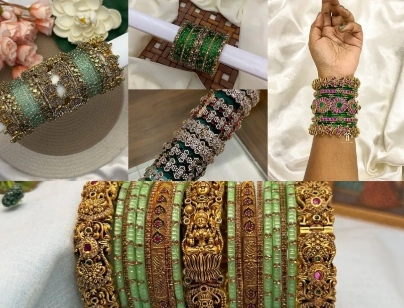 फ्लावर डिज़ाइन वाले कंगन, ग्रीन साड़ी या सलवार सूट के साथ बेहद आकर्षक लगते हैं।